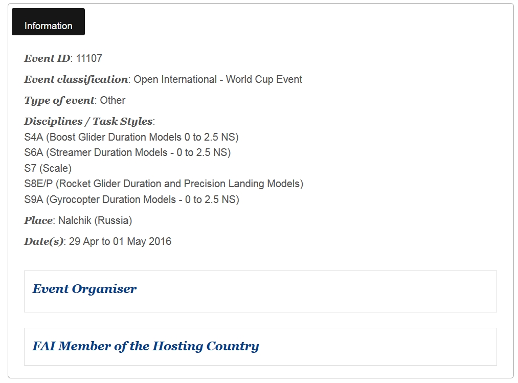 Обнародован ЕКП по авиамодельному спорту спорту в России на 2016 год.
