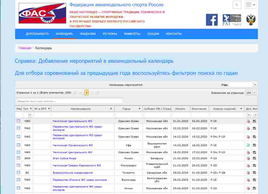 На сайте Федерации авиамодельного спорта России опубликован календарь соревнований на 2020 год.