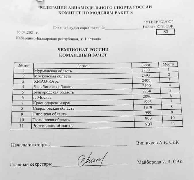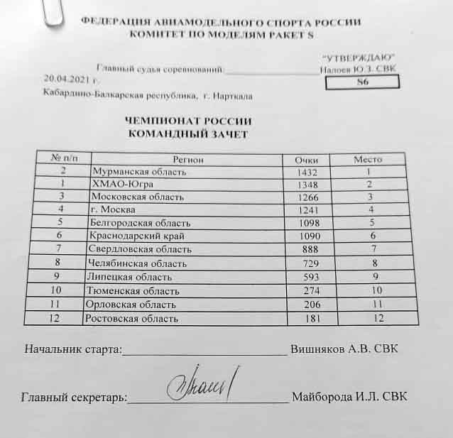 Второе общекомандное место на Первенстве России по авиамодельному спорту в классе моделей ракет завоевала команда Белгородской области. В городе Нальчик Кабардино Балкарской республики, собрались сильнейшие команды из двенадцати регионов Российской Федерации. В упорнейшей борьбе наши ребята уступили в командном первенстве лишь команде Московской области. Два первых , четыре вторых и два третьих места в личном зачете завоевали обучающиеся Новооскольской станции юных техников и Белгородского областного центра детского (юношеского) технического творчества. Четверо Новооскольцев Илья Фартушин, Александр Ворнавской, Николай Кузнецов и Виталий Задорожный привезли домой пятнадцать дипломов и медалей в личном и командном первенстве. Они стали кандидатами в национальную юношескую сборную России для участия в Чемпионате Мира, который пройдет в августе 2021 года в Румынии. Ребятам было на кого равняться, их руководитель В.Майборода, стал победителем Чемпионата России в классе ракетопланов и призёром Кубка России в классе радиоуправляемых ракетопланов. Ребята на ровне со взрослыми участвовали в Чемпионате России и Кубке России, где внесли свой вклад в командные результаты в спортивных классах.