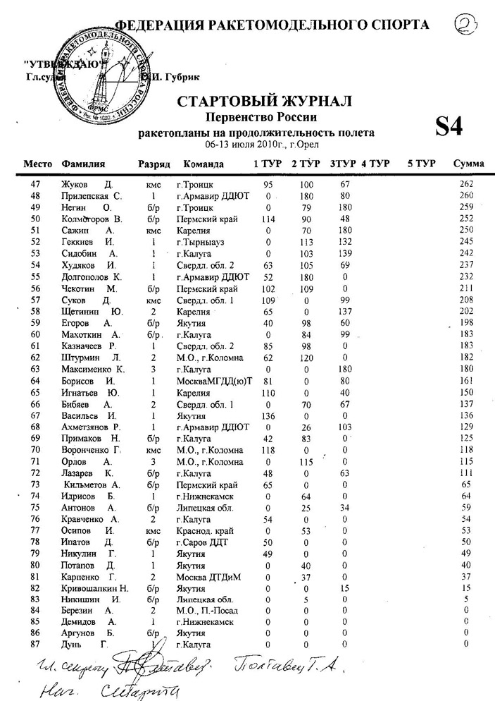 2. Всероссийский семинар судейского корпуса ракетомоделистов России, и присвоение новых категорий.