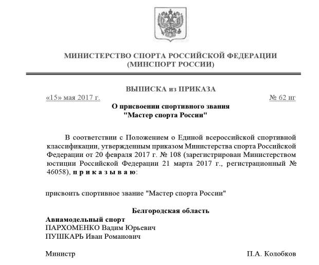 В соответствии с Положением о Единой всероссийской спортивной классификации, утвержденным приказом Министерства спорта Российской Федерации от 20 февраля 2017 г. № 108 (зарегистрирован Министерством юстиции Российской Федерации 21 марта 2017 г., регистрационный № 46058), п р и к а з ы в а ю: