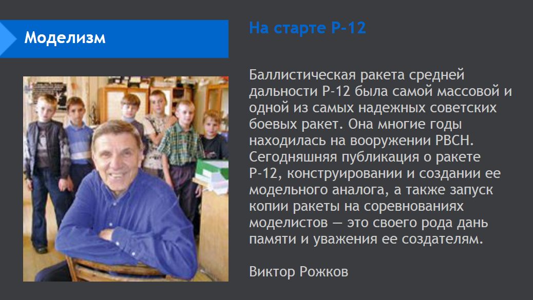 Re: Журнал «Российский космос» и ракетомоделизм.