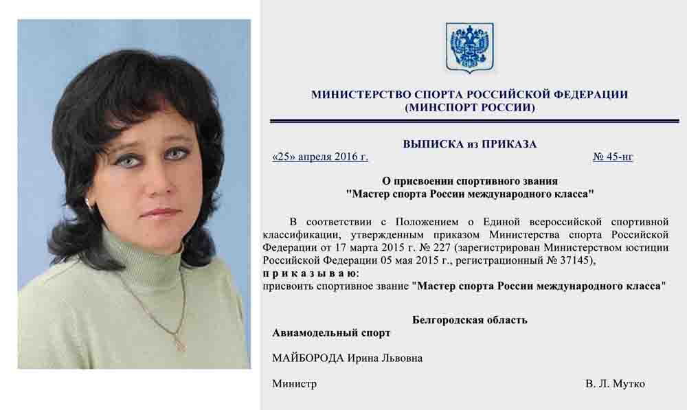 Поздравляем Ирину Майборода из Нового Оскола, Белгородской области с присвоением высокого звания "Мастер спорта России международного класса".
