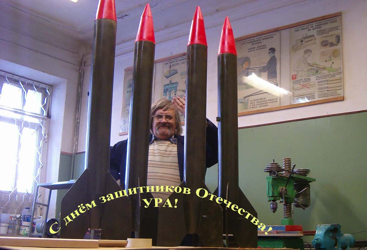 Всех мужчин ракетомоделистов поздравляю с Днем защитника Отечества – праздником мужества, благородства и чести! От всей души желаю Вам творческих успехов, счастья, благополучия и всего самого доброго! Пусть трудности, встречающиеся на Вашем пути, будут всегда легко преодолимы. Крепкого здоровья, душевного тепла и праздничного настроения!