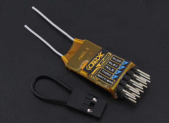 OrangeRx R400 только 2,7 г в весе и 35x15x9mm в размерах. Отлично подходит для внутреннего микро самолетов, вертолетов, parkflyers или даже средних самолетах спорта.