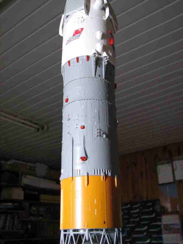 Серия РН "Молния"  началась в 1960 году. Первые три пуска были аварийными. 12 февраля 1961 года -  успешный запуск. Все четыре ступени отработали и вывели АМС "Венера1" на межпланетную трассу.  В середине пути к Венере спутник прекратил выходить на связь и прошел от планеты на расстоянии 100 тыс. км. Первые пуски "Молний" проходили на Байконуре, но затем всё перевели в Плесецк. Последний пуск серии РН "Молний" ("МолнияМ") был произведен 30 сентября 2010г.Вашему вниманию представлена модель  серии "Молния" М1:40. Фотографий "Молний"  мало, что очень серьёзно затрудняло изготовление модели.