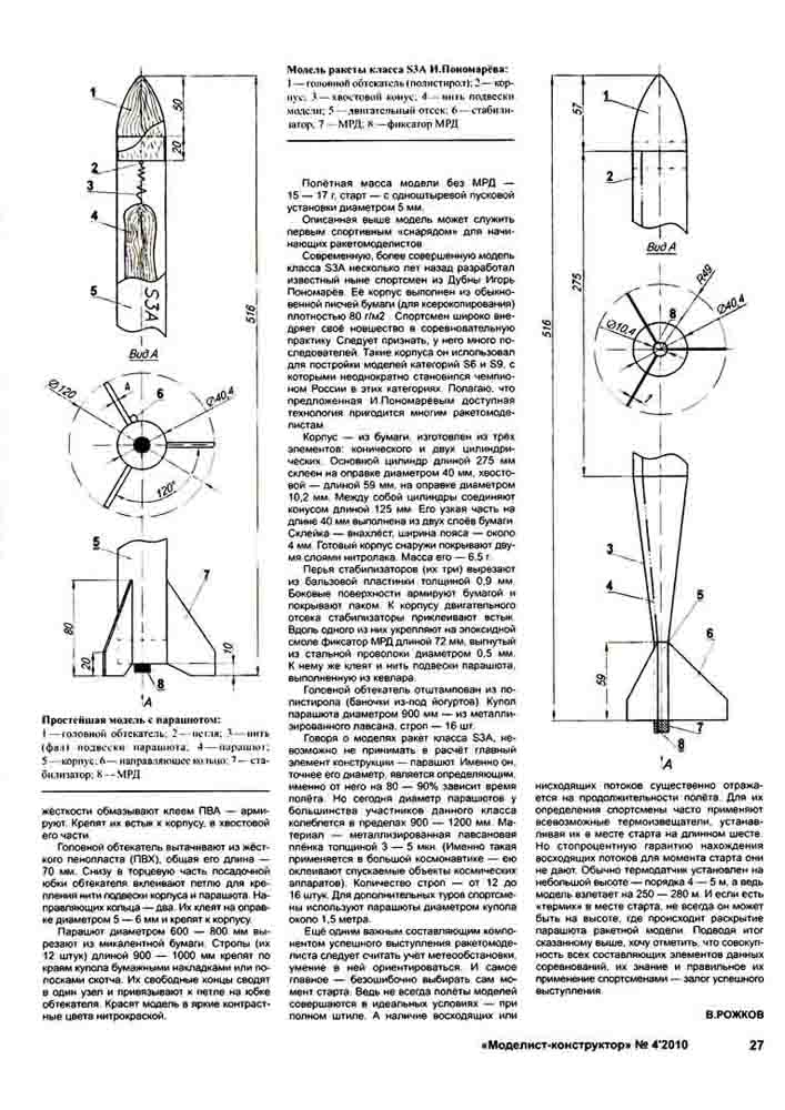 Модель ракеты Олега Меньшикова: чертежи, описание конструкции и технологии изготовления