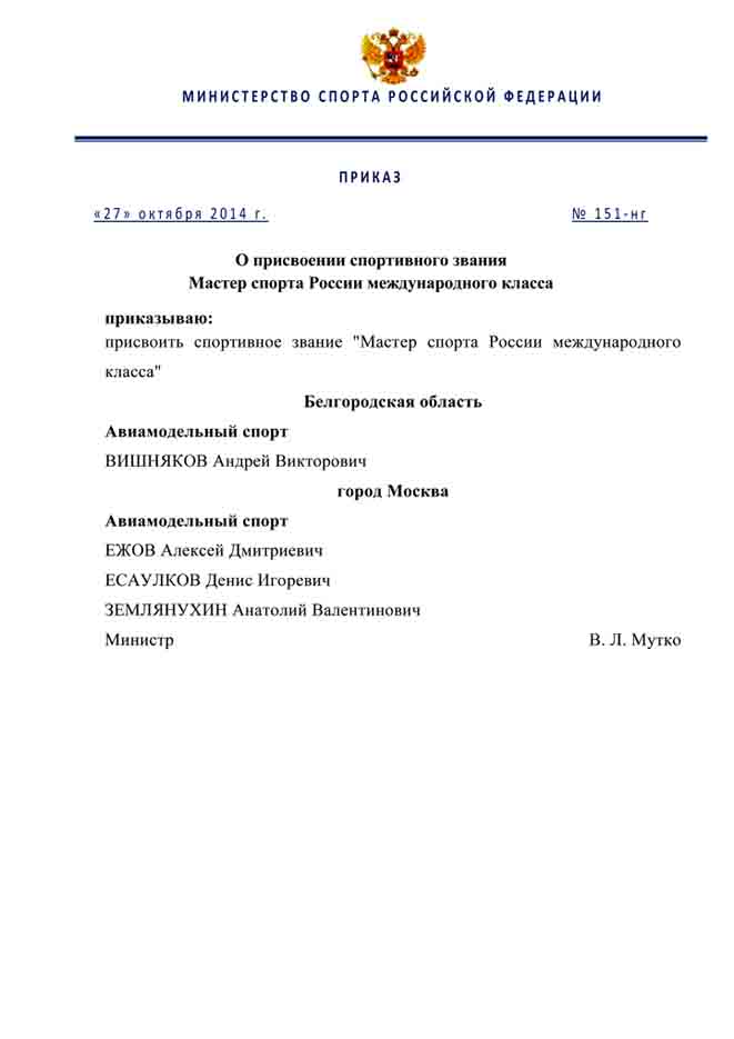 Поздравляем с присвоение спортивного звания "Мастер спорта России международного класса"