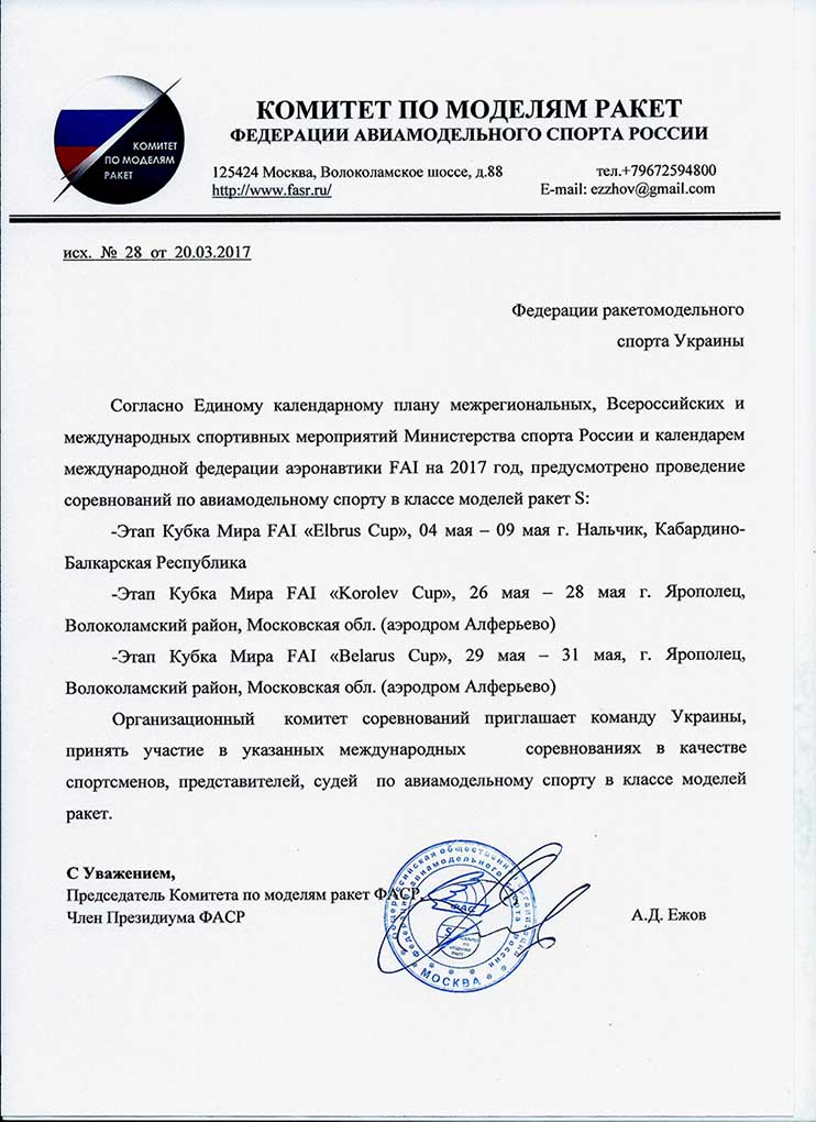 Интересная дискуссия идет на параллельном сайте http://frms.ua/forum/viewtopic.php?f=8&t=1326 по поводу приглашения комитетом моделей ракет ФАСР Украинских спортсменов ракетомоделистов на этапы кубка мира в России.