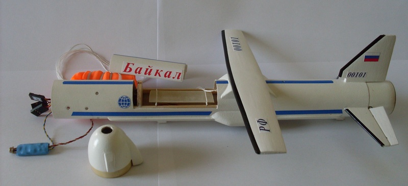На модели "Буран" или "Буря" предполагается одним электрозапалом запускать в полете двигатели "Бурана" или крылатой " Бури", вторым - систему спасения.
