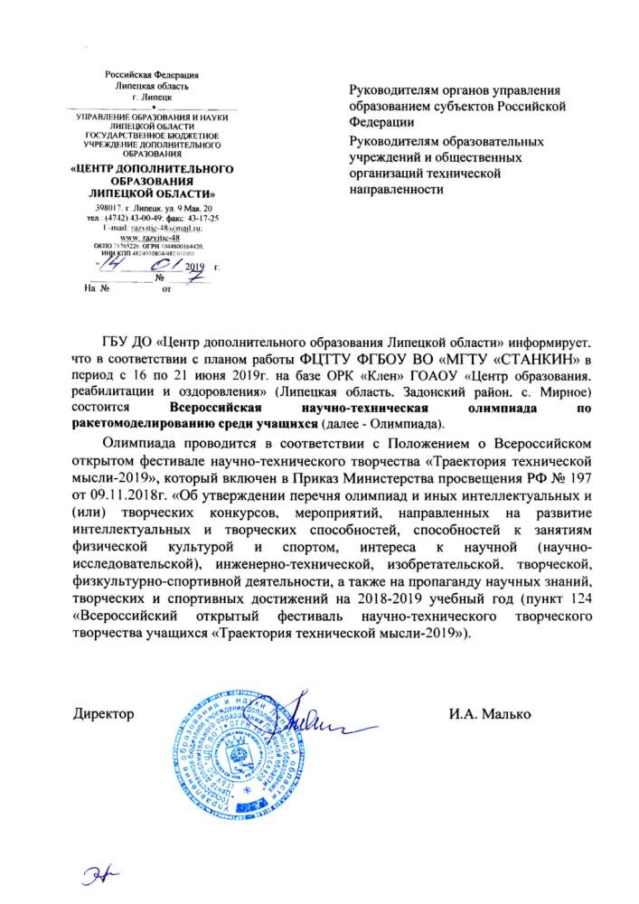 3.3.1 Финал Всероссийской научно-технической олимпиады по ракетомоделированию среди учащихся Государственное бюджетное учреждение дополнительного образования "Центр дополнительного образования Липецкой области" 398017 г. Липецк, ул. 9 Мая, дом 20.