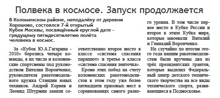 Заметка в газете "Коломенская правда"