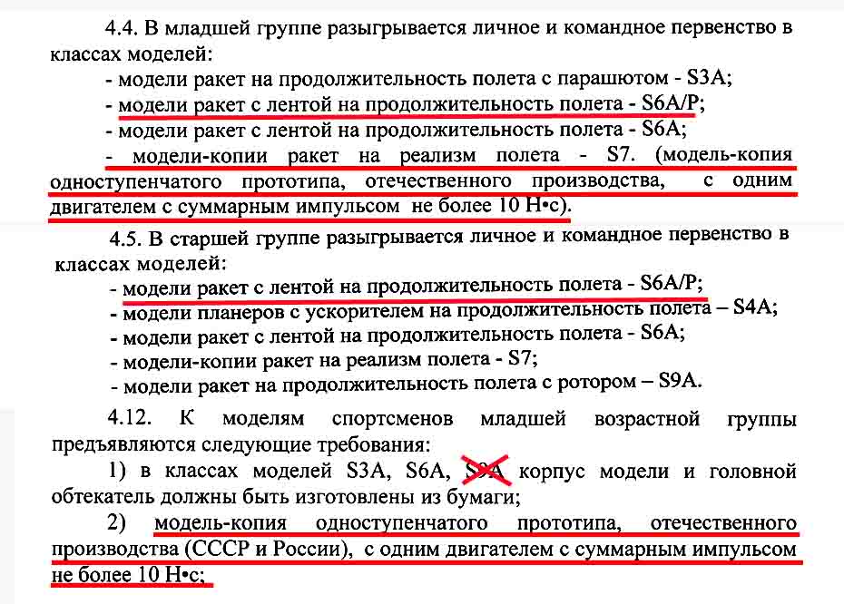 [color=#FF0000]На соревнованиях среди юношей для категорий S3, S4, S6 и S9 перед началом соревнований разрешается регистрировать три моделей, но для дополнительных туров модели не регистрируются.