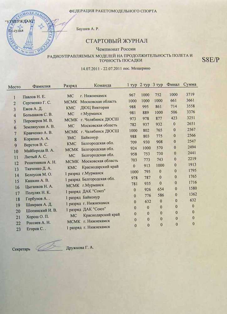 А в отношении показанных результатов на ЧР-2011 – во всех спортивных класса не было не только ни одного флай-офа, но даже никто не показал 3 маха. Кстати, американцы на своих отборочных соревнованиях заочно облетали россиян – у них, по-крайней мере, в одном классе - S3 победителем были показаны 3 маха в 3-х турах. Похоже, что ЧР даже по результам смахивал скорее на подзаборные соревнования.