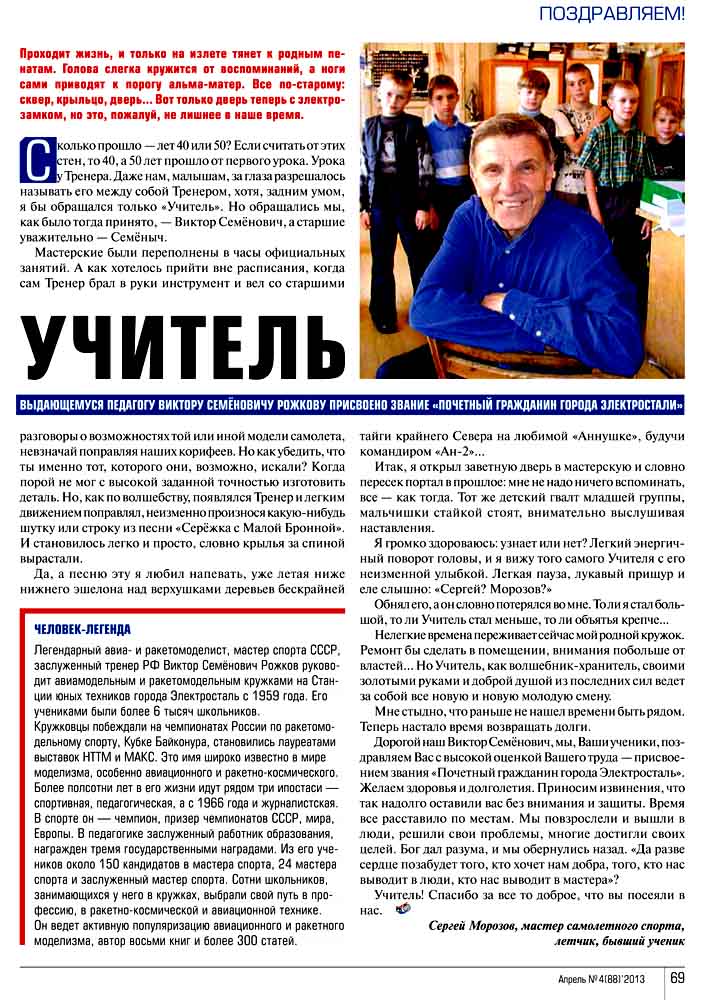 Решением Совета депутатов муниципального образования "город Электросталь" Московской области за большой личный вклад в дело развития спорта и образования Рожков Виктор Семенович удостоен Звания "Почетный гражданин города Электросталь".