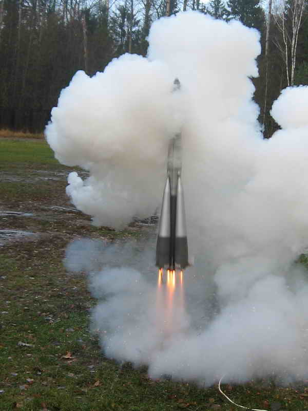Циклограмма полёта: старт, отделение ускорителей, отделение створок обтекателя, отделение второй ступени, отделение КК, отделение СА, плазменный след, отделение космонавта. Удалось не всё...
