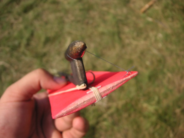то теперь можно будет неотсреливать двигатель. впринципе конструкция ракетоплана неизменится. теперь катаем пару грам свинца, а будем сгоревший двигатель. вроде какие проблемы, а проблема в механизме открытии крыла. возвращатся к пережигаемой нитке я котегорически нехочу (после ЧЕ2005 когда в третем туре после двух мах непрогорела нить, впервые за десяток лет моделирования).