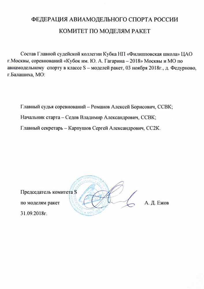 Данное Приложение является официальным приглашением на Кубок МОСКВЫ «КУБОК ИМ. Ю. А. ГАГАРИНА, 2018г.»