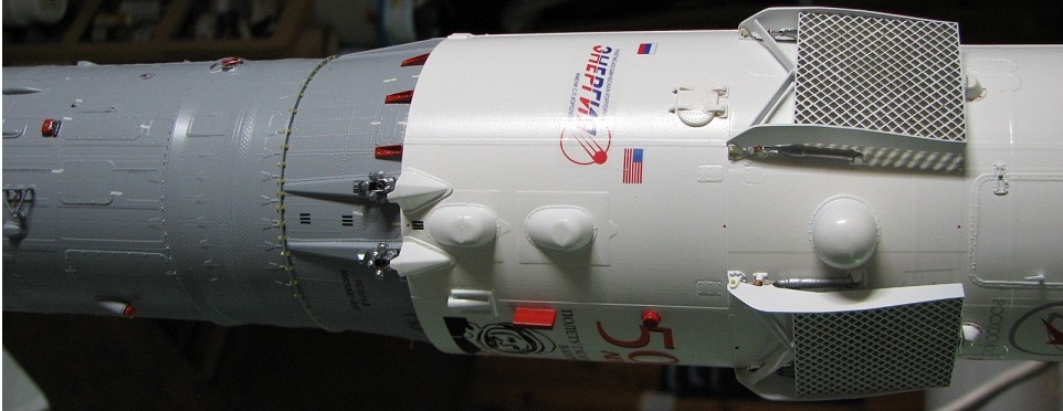 Как то совсем недавно (в письме) у меня спрашивали:"...откуда берутся парашюты в боковых блоках?" И я отправил интересующегося к статье В.И. Минакова "Моделист-конструктор". Номер журнала не помню( кажется 5 № и 11 № от 2002г). Владимир Ильич попытался описать модель "Союз"ТМ12( масштаб 1:50).